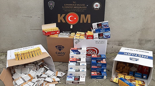 Kaçakçılık ve Organize Suçlarla Mücadele Şube Müdürlüğü’nce Çarşamba günü Lâpseki’de bir iş yerinde yapılan arama sonucu çok sayıda kaçak tütün ürünü ele geçirildi.