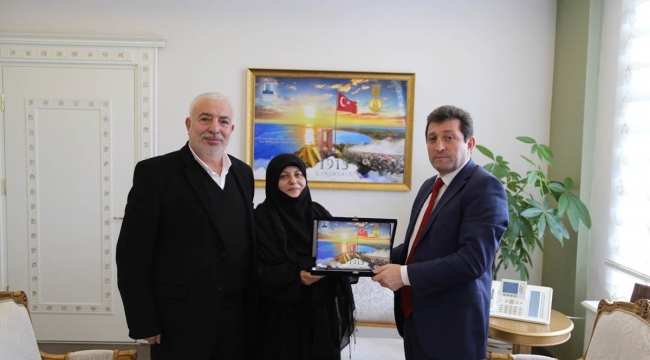 Şerife Boz ve ailesinin ziyaretinden duyduğu memnuniyeti dile getiren Vali Orhan TAVLI, Şerife Boz’a Şehitler Abidesi temalı taşbaskı tablo hediye etti.