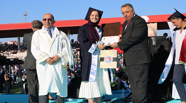 Diploması ve onur belgesi Rektör Prof. Dr. Sedat Murat ve Çanakkale Vali Vekili Celil Ateşoğlu tarafından tevdi edilen Rasie Mekera’nın ailesi de törene katıldı.