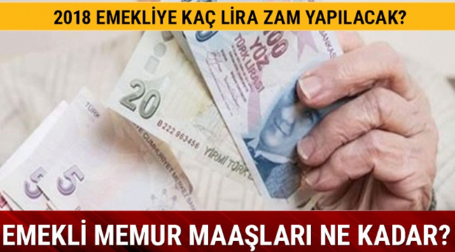 Memur emeklilerinin önümüzdeki toplu sözleşmeden kaynaklı maaş zamlarına yeni zamlarla birlikte en düşük memur emeklisinin maaşı 2018'in ilk yarısında yüzde 4'lük zam oranı ile birlikte 1.945 liraya çıkacak. 2015'de yapılan toplu sözleşme çerçevesinde memur ve emeklileri 2016 yılı Ocak ayında yüzde 6, Temmuz ayında da yüzde 5 zam aldılar. Ayrıca 2016'nın Ocak ayında da maaşlara yüzde 0,90 enflasyon farkı yansıdı. Bu yıl ise, yani 2017'de, toplu sözleşmede zam oranı Ocak ayında yüzde 3, Temmuz ayında yüzde 4 olarak belirlendi. Temmuz ayında ise yüzde 2,89 enflasyon farkı oluştu ve zam oranı yüzde 6,89 oldu. Böylece memur ve emeklileri, 2016-2017'de toplam 21,79 zam almışlardı.