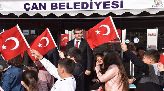 Ardından saat 10.00’da Atatürk Şehir meydanında Çan Kaymakamı Mustafa Gürdal, Garnizon Komutanı Askerlik Şubesi Başkanı Pers. Ast. Ahmet Boz ve Çan Belediye Başkanı Bülent Öz, öğrencilerin ve vatandaşların bayramını kutladı. Ardından saygı duruşu ve İstiklal Marşının okunması ile program devam etti.