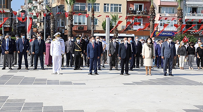 Cumhuriyet Meydanı’ndaki törende Atatürk Anıtı’na Vali İlhami AKTAŞ, Boğaz ve Garnizon Komutanı Tuğamiral Mehmet Cem Okyay ve Çanakkale İli Merkez İlçe Belediye Başkan V. Süleyman Canpolat tarafından çelenk sunuldu.