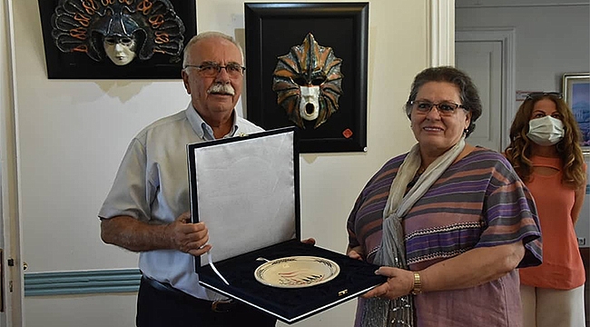 Çanakkale Belediye Başkanı Ülgür Gökhan, eşi Hale Gökhan’la birlikte Ayşe Birsen İlter ve Orçun İlter’in “4 Mevsim Anadolu ve Maskeler” isimli sergisini gezdi.