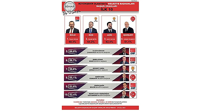 Sonar Araştırma şirketi tarafından, başarılı belediye başkanları ile ilgili çalışma yapıldı.