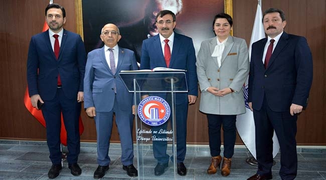 AK Parti Genel Başkan Yardımcısı ve Dış İlişkiler Genel Başkanı Cevdet Yılmaz, Çanakkale Onsekiz Mart Üniversitesi Rektörü Prof. Dr. Sedat Murat'ı makamında ziyaret etti.