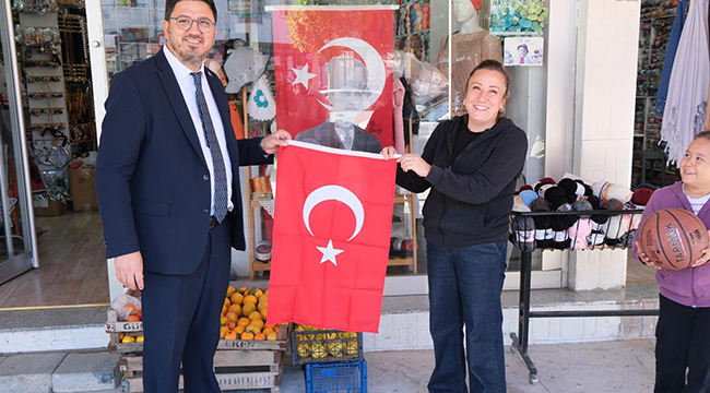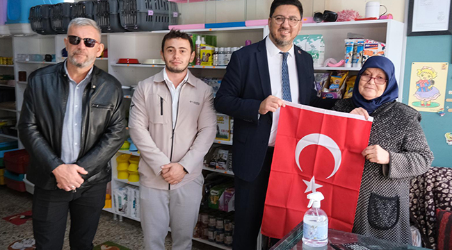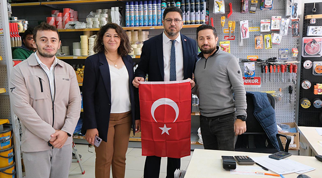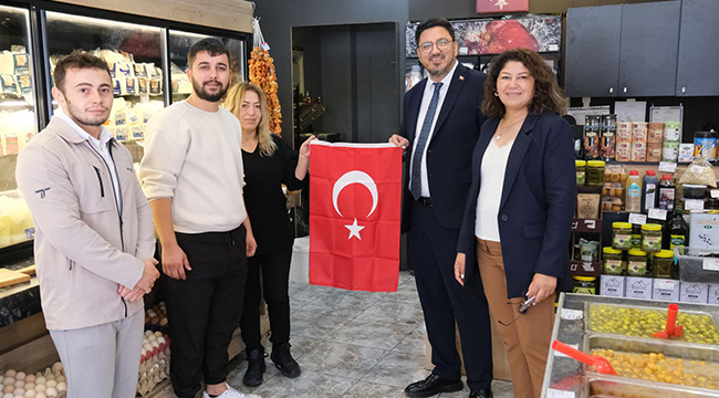 Ziyaretler kapsamında esnaflara Türk Bayrağı hediye edilerek, Cumhuriyet’in 102’nci yılı kutlandı.