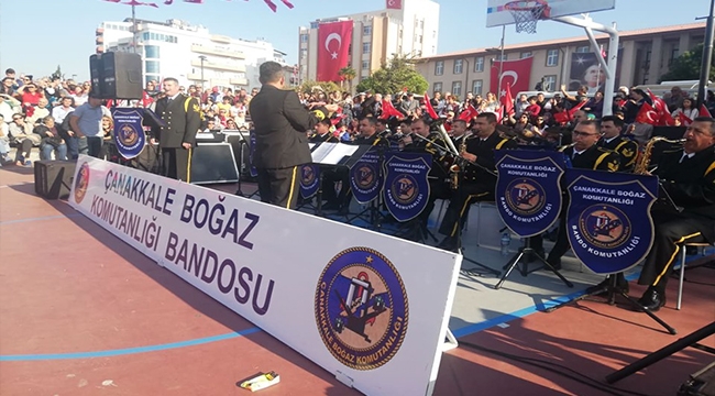 Çanakkale Boğaz ve Garnizon Komutanlığı’na bağlı askeri bando takımı, dün 29 Ekim Cumhuriyet Bayramı kutlamaları kapsamında Çağlar Kaynak Basketbol Sahası’nda konser verdi.