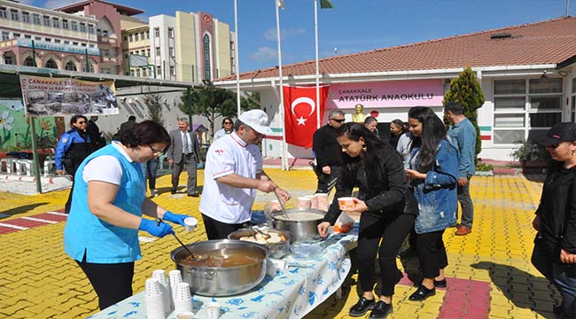 Çanakkale Atatürk Anaokulu, 18 Mart Şehitleri Anma Günü ve Çanakkale Deniz Zaferi’nin 104. Yıl Dönümü etkinlikleri kapsamında tüm öğrenci ve velilerine ecdad aşı olarak bilinen “yağlı buğday çorbası ve üzüm hoşafı” ikram etti.