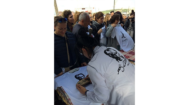 ‘Tişörtünü al, gel’ sloganıyla düzenlenen etkinlikte tişörtlere Kültür ve Turizm Bakanlığı Geleneksel Türk El Sanatları Sanatçısı Handan Cengiz Türk tarafından “Atatürk görseli ve Atatürk’ün eşsiz imzasının” kök boya ile baskısı yapıldı.
