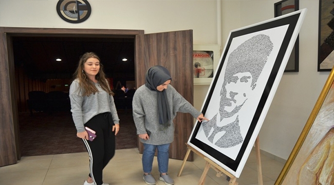 Biga İçdaş Fen Lisesi ve Biga Atatürk Anadolu Lisesi öğrencilerinin hazırladığı kompozisyon öğrencilerin ilgi odağı oldu. Görsel Sanatlar Öğretmeni Özlem Bekcan Öztürk yaptığı açıklamada, "Kompozisyonda 615 isime yer verdik. Atatürk'ün kalpaklı şablonu üzerine isimlerden oluşturduk ve çok etkili oldu. 9-A sınıfından 12-B sınıfına kadar tüm öğrenci ve öğretmenlerimizin ismini temizlik görevlimizden yemekhane görevlisine kadar tamamının isimleri burada mevcut. Her birinin katkıları ile oluşturduk. Öğrencilerimiz gelip kendi isimlerini arıyor. Adımız burada kalacak diyerek kendilerinden bir parça buluyorlar. Aynı zamanda bir farkındalık oluşturduk. Bir hafta süre ile kalacak olan kompozisyon daha sonra okulumuzun salonunda yer alacak" diye konuştu.