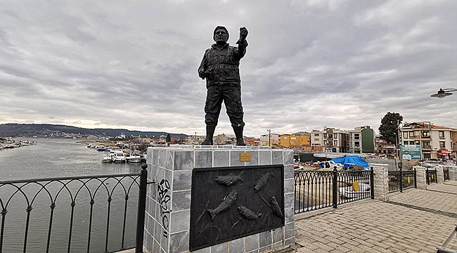 Edebi yönüyle de bilinen Avukat İşgüden'in kaleme aldığı şiir, köprü üzerinde bulunan balıkçı heykelinde kentliler ile buluşturuldu.