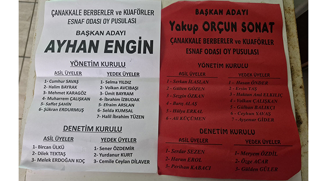 Çanakkale Berberler ve Kuaförler Odası seçimlerinde sandık sonuçlarının netleşmesiyle birlikte, uzun yıllardır başkanlık görevini yürüten Ayhan Engin, üyelerin oylarıyla yeniden başkan seçildi.