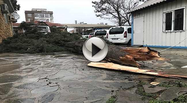 AYVACIK'TA ŞİDDETLİ RÜZGAR AĞAÇ DEVİRDİ!