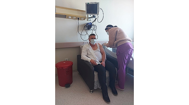 Ayvacık Belediye Başkanı Mesut Bayram, aşı sırasının gelmesinin ardından koronavirüs aşısı oldu.