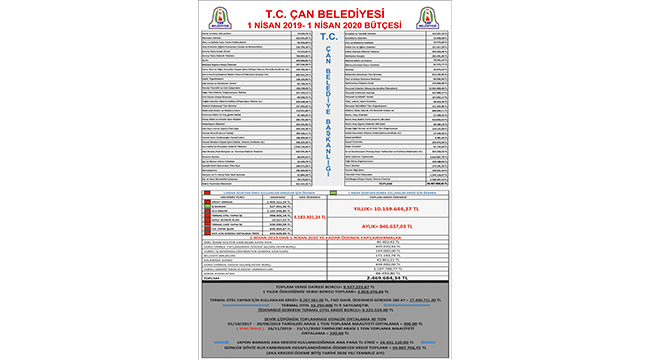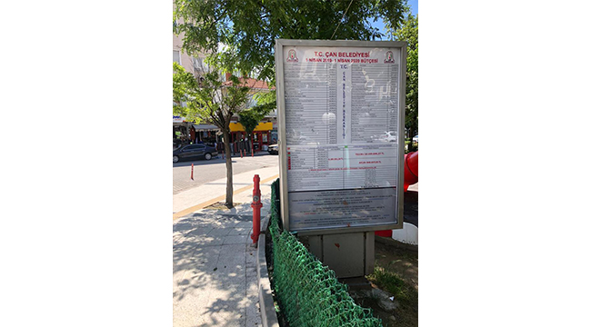 Çan Belediye Başkanı Bülent ÖZ, seçimlerden önce verdiği şeffaflık sözünü, 1 Nisan 2019 – 1 Nisan 2020 tarihleri arası belediye mali durum bütçesini şehrin muhtelif yerlerindeki bilbordlarda, belediyenin sosyal medya hesaplarında ve web sitesinde ilan ederek yerine getirdi.