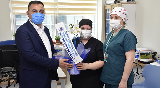 Biga Belediye Başkanı Bülent Erdoğan, Biga’da görev yapan hemşirelerin 12 Mayıs Dünya Hemşireler Günü’nü kutlayarak çiçek hediye etti.