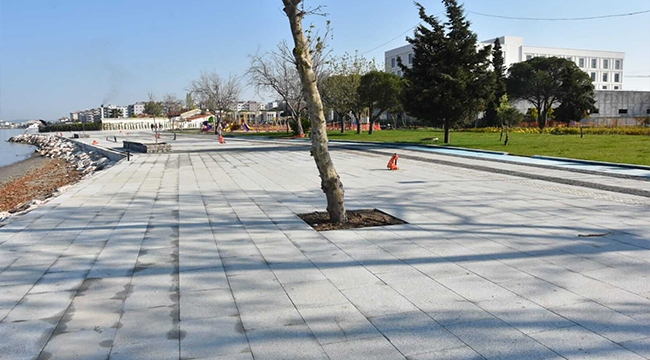 Başkan Gökhan’ın bir sonraki durağı ise Barış Kordonu oldu. Başkan Gökhan, kentin yeni cazibe merkezlerinden biri haline gelecek olan Barış Kordonu uzatma çalışmaları hakkında da teknik ekipten bilgi aldı. Yeni Kordonun bittiği yerden, Kıyı AVM alanına kadar toplam 17.850 m2 ve 783 metre sahil bandını kapsayan projenin kaba inşaatı tamamlanırken, hızla üstyapı çalışmaları, peyzaj işleri ve mimari imalat çalışmaları yürütülüyor.