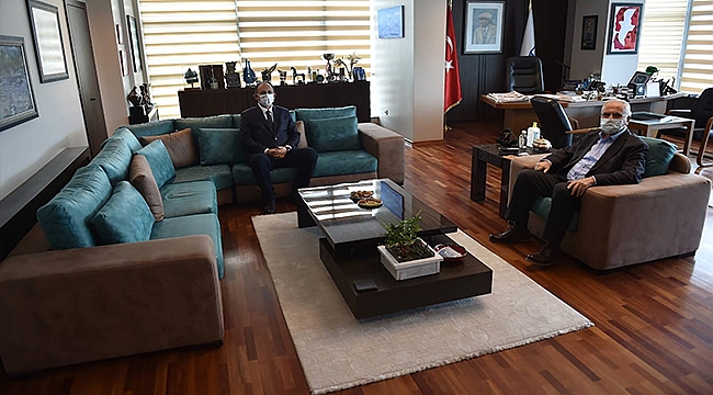 Belediye Başkanı Ülgür Gökhan, 24 Mart 2021 Çarşamba günü ÇOMÜ Devlet Konservatuar Müdürü Prof. Dr. Uğur Türkmen ve Çanakkale Liman Başkanı Cüneyt Aydemir’i makamında ağırladı.