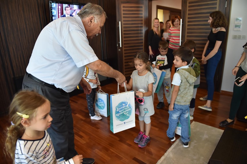 Belediye Başkanı Ülgür Gökhan, Denizbank Barbaros Şube Müdürü Özgür Şahin, Denizbank İskele Şube Müdürü Mümtaz Dönmez ile Kabaklı Köyü Bilge Leylek İlkokulu öğretmen ve öğrencilerini makamında ağırladı.