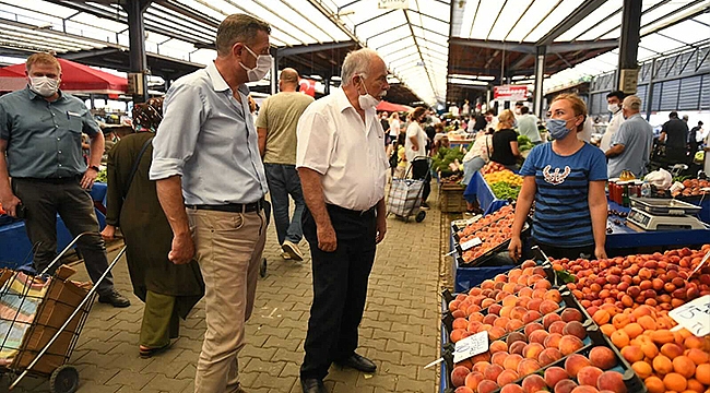 Belediye Başkanı Ülgür Gökhan, denetimli normalleşme kapsamında pazar yerinde alınan tedbirleri denetledi.