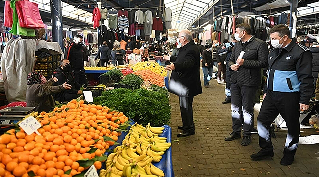 Belediye Başkanı Ülgür Gökhan, 4 Aralık 2020 Cuma günü Pazar Yerinde salgın hastalık riski nedeni ile alınan tedbirlere ilişkin denetlemelerde bulundu.