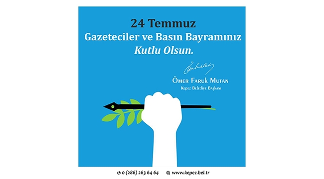 Kepez Belde Belediye Başkanı Ömer Faruk Mutan sosyal medya üzerinden yaptığı paylaşımla Gazeteciler ve Basın Bayramı'nı kutladı.