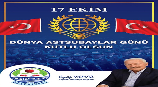 Lapseki Belediye Başkanı Eyüp Yılmaz Astsubaylar Günü münasebetiyle bir mesaj yayınladı. Yayınladığı mesajda "Vatan görevi için canını dişine takarak çalışan tüm Ordu mensuplarımızın ve astsubayların gününü kutlarım" dedi.