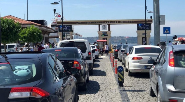 Kurban Bayramı'nın son gününde dönüş hazırlığına başlayan tatilciler, Çanakkale iskelelerinde uzun araç kuyruğu oluşturdu.