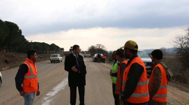Bayramiç Ezine arasında sıcak asfalt çalışmaları başladı.