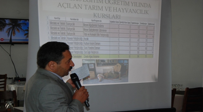 İlçe Halk Eğitim Merkezi Müdürü Celalettin Öztürk ise yıl içinde yürütülen çalışmalar hakkında sunum yaptı.