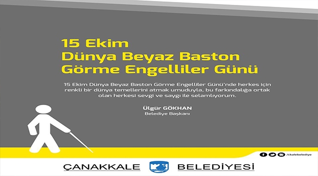 Belediye Başkanı Sayın Ülgür Gökhan'ın 15 Ekim Dünya Beyaz Baston Görme Engelliler Günü Mesajı