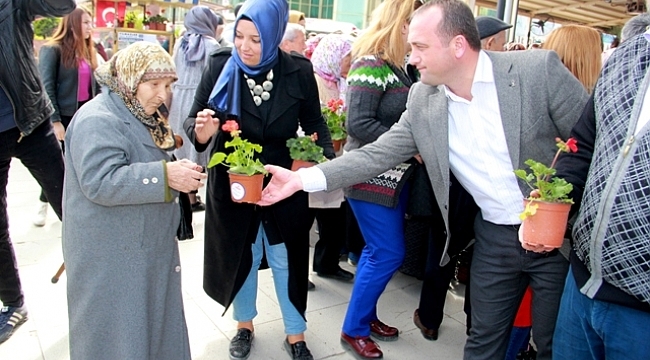 AK Parti'nin referandum kampanyası kapsamında bugün Biga ilçe başkanı Ahmet Şahin ve Ak parti ilçe yönetimi olarak vatandaşlara çiçek dağıtımında bulundu.