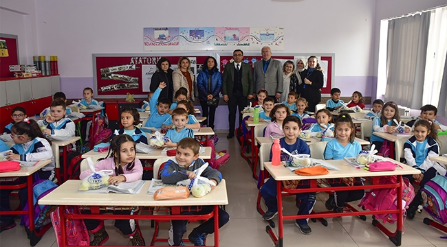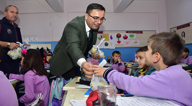 BİGA BELEDİYESİ'NDEN ÖĞRENCİLERE ELMA İKRAMI