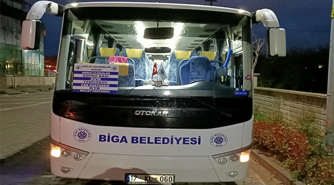 Biga Belediyesi, Koronavirüs’le (Kovid-19) mücadele kapsamında gece gündüz fedakarca çalışan sağlık çalışanları için ücretsiz servis hizmetini başlattı.