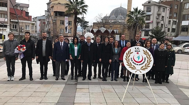 Cumhuriyet Meydanındaki törende Biga İlçe Sağlık Müdürü Dr. Hatice Nur Tilkan, Devlet Hastanesi Başhekim Yardımcısı Dr. Erhan Büyük, Biga Can Hastanesi ve Devlet Hastanesi çalışanları, Atatürk Anıtına çelenk koydu.