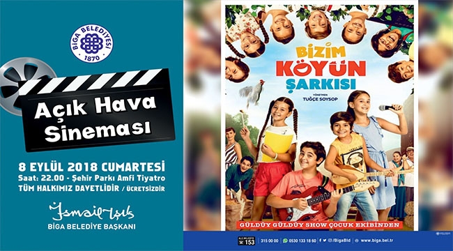 Bigalıların yoğun ilgi gösterdiği Açık Hava Sineması'nda bu hafta 2018 yapımı 'Bizim Köyün Şarkısı' adlı film gösterilecek. 2018 yapımı filmin yönetmenliğini Tuğçe Şentop yapıyor. Güldüy güldüy show çocuk ekibinin oyuncularının yer aldığı filmde Sezai Aydın, Tansel Öngel, Güneş Sayın gibi ünlü oyuncular da rol alıyor.