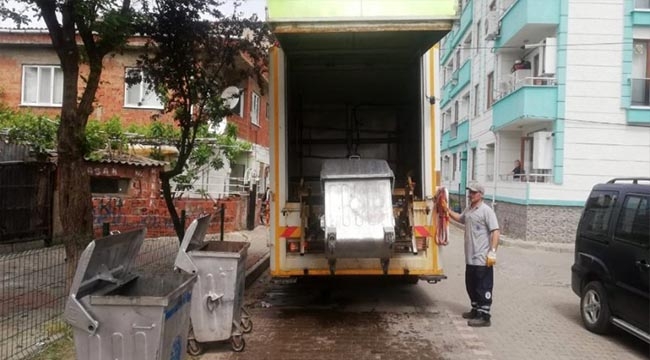 BİGA'DA ÇÖP KONTEYNERLERİ YIKANIP, DEZENFEKTE EDİLDİ