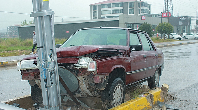 Biga’da yağış nedeniyle kayganlaşan yolda kontrolden çıkan otomobilin elektrik direğine çarpma sonucu 1 kişi yaralandı.