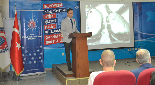 Saygı duruşu ve İstiklal Marşı’nın okunmasının ardından Biga İİBF Dekan Vekili Prof. Dr. Bünyamin Bacak 2018-2019 akademik yılı Biga İktisadi ve idari Bilimler Fakültesinin akademik ve idari faaliyetlerini içeren bir sunum gerçekleştirirken, planlanan çalışmalar hakkında bilgilendirmelerde bulundu.