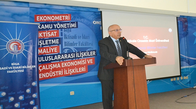 Biga İktisadi ve İdari Bilimler Fakültesinin kendisi için özel bir yeri olduğunu belirterek başladığı konuşmasında Rektör Prof. Dr. Sedat Murat, önceki Rektörler Prof. Dr. Yücel Acer ve Prof. Dr. Ali Akdemir’e emeklerinden dolayı teşekkür etti. Daha önce çeşitli kurumlarda almış olduğu görevlere değinen Rektör Murat, üniversite personelinin etrafını aydınlatan münevver bireyler olması gerektiğini dile getirdi. Çanakkale Onsekiz Mart Üniversitesi’ni bir araştırma üniversitesi yapma hedefinin olduğunun altını çizen Prof. Dr. Sedat Murat, akademik yükselme kriterlerinde en çok dikkat edeceği üç noktanın; bekleme süresi, ihtiyaç durumu ve çalışkanlık olduğunu; özellikle proje yapan öğretim elemanlarına desteklerini esirgemeyeceğini dile getirdi.