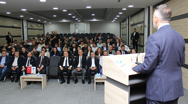 Aydın konuşmasının devamında; "İhracatta Eylül’de rekor kırdık. Binde 7 büyüme ile tarihe geçmiş olduk. Önümüzdeki süreci, iş dünyasına olabildiğince anlatmaya gayret ediyoruz. 2023, 2024, 2025 yıllarında hem devlet tarafında hem özel sektörde hem direkt vatandaşlarımızı ilgilendirecek bir daralma ve sıkı bir politikayla karşı karşıyayız. Dünyada bir daralma, kabuğuna çekilme dönemi içerisindeyiz. Biraz daha ayağımızı yorganımıza göre uzatma döneminin tam ortasındayız.” dedi.