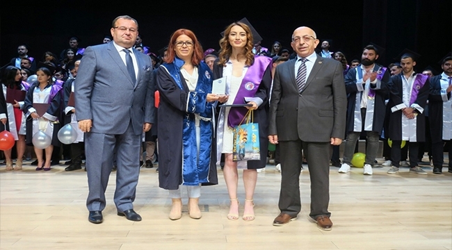 Saygı duruşu ve İstiklal Marşının okunmasının ardından Fakülte birincisi Esra Özeri mezun öğrencileri temsilen yaptığı konuşmada “Bu uzun ve meşakkatli yolda bizlere emeği geçen hocalarımıza ve hep yanımızda olan ailelerimize teşekkür ediyoruz” dedi.