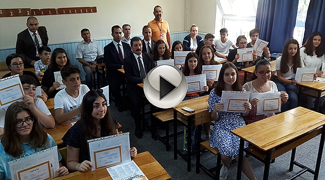 Vali Orhan Tavlı ve beraberindekiler, karnelerini dağıttıkları öğrencilere iyi bir tatil dileğinde bulundu.
