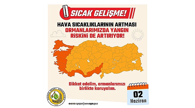 Orman yangınları ile ilgili Orman Genel Müdürlüğü tarafından bir görsel hazırlandı. Hazırlanan görselde, Trakya, Marmara, Ege ve Akdeniz yüksek riskli olarak gösterildi.
