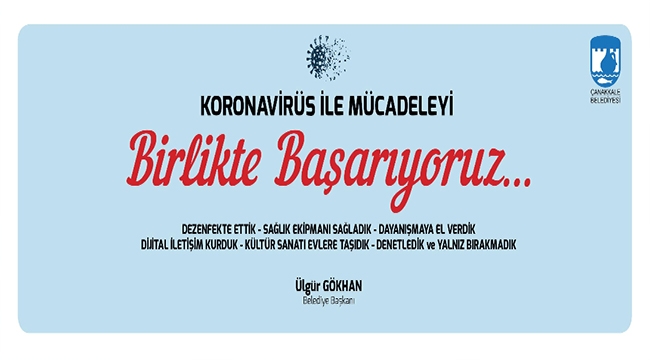Halk sağlığına yönelik çalışmalarına ara vermeyen Çanakkale Belediyesi, hastalığın ülkemizde ilk görüldüğü tarih olan Mart ayı ile itibariyle hızla başlattığı çalışmalar kapsamında, başta kent genelinde temizlik ve dezenfeksiyon çalışmaları olmak üzere, dayanışma, kültür sanat ve bilgilendirmeye yönelik pek çok çalışma gerçekleştirdi.