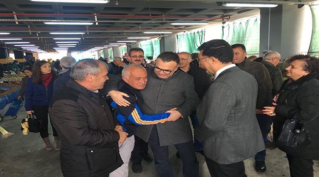 Birol Arslan pazarcı esnafının yakın ilgisiyle karşılaştı