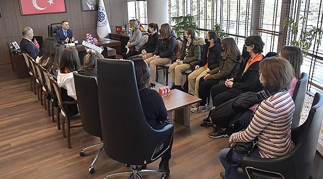 Biga Ortaokulu Yıldız Kızlar Basketbol Takımında mücadele eden öğrenciler Başkan Erdoğan'ı makamında ziyaret etti.