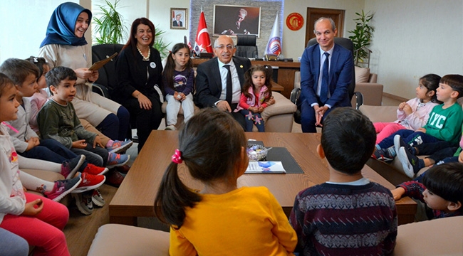 ÇOMÜ Çok Amaçlı Erken Çocukluk Eğitimi Merkezi (ÇABAÇAM) öğrencileri ve öğretmenleri Rektör Prof. Dr. Sedat Murat’ı makamında ziyaret etti.