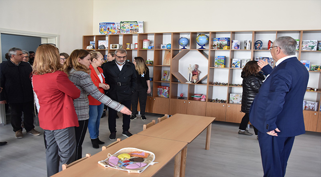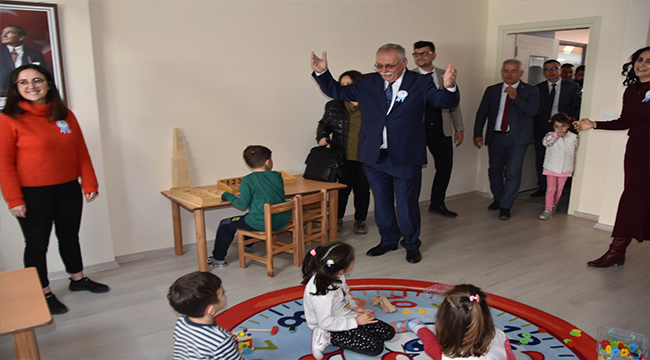 Kreşle ilgili bilgi veren Başkan; “Burada oyun ve eğitim malzemelerinin hepsi sağlıklıdır ve tamamı Çanakkale Belediyesi ahşap atölyesinde yapılmıştır. Bahçenin ve oyun parkının dışında bahçede çocukların vakit geçirebileceği ve doğayı öğrenebileceği bir alan da şu an yapım aşamasında. Burada uzmanlarla çalışıyoruz. Hepsi eğitimlerini almış genç arkadaşlarımız. Buraya çocuklarını gönderen veliler hep güven içerisinde çocuklarını yollayabiliyorlar. Sınıfların ikinci katında çeşitli eğitim alanları var. Burası klasik bir kreşin ötesinde eğitime ön hazırlık ortamı olarak tasarlandı.” şeklinde konuştu.