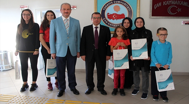 2019 Yılı Camiler ve Din Görevlileri haftası etkinlikleri kapsamında Çan İlçe Müftülüğü tarafından düzenlenen şiir ve kompozisyon dallarında dereceye giren öğrencilere Çan İlçe Kaymakamı Mustafa Gürdal ve Çan İlçe Müftüsü Mustafa Korkmaz tarafından öğrencilere hediyeleri verildi.